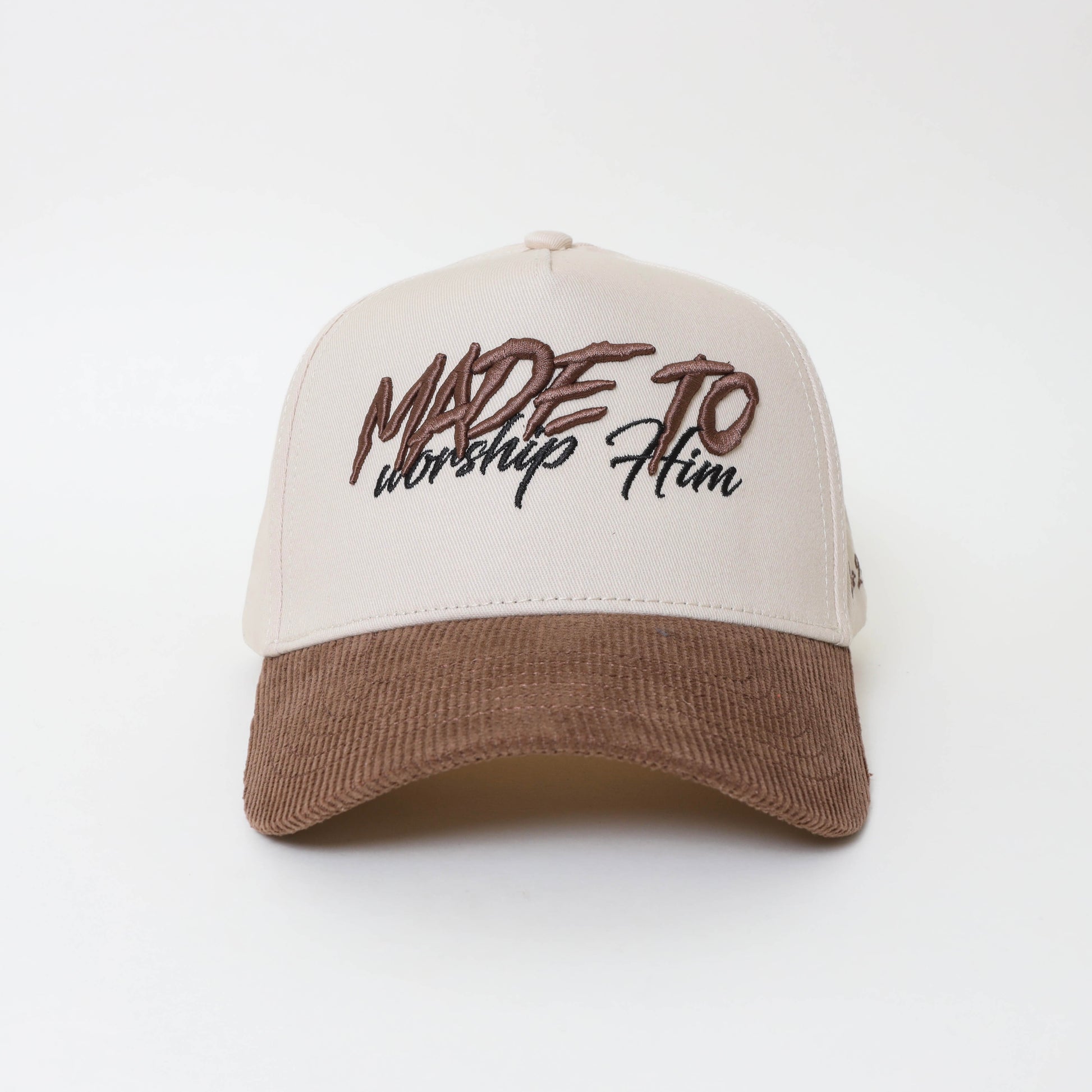 • Front: 3D puff embroidery – “MADE TO worship Him”